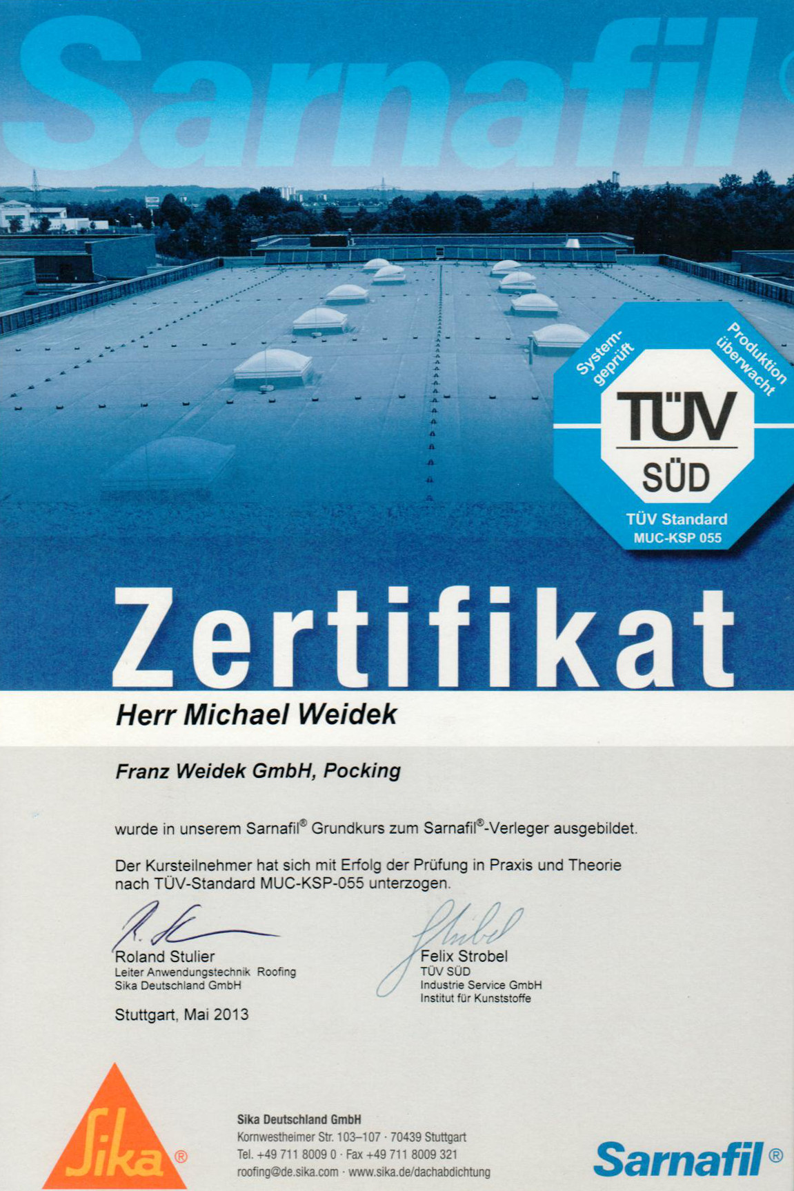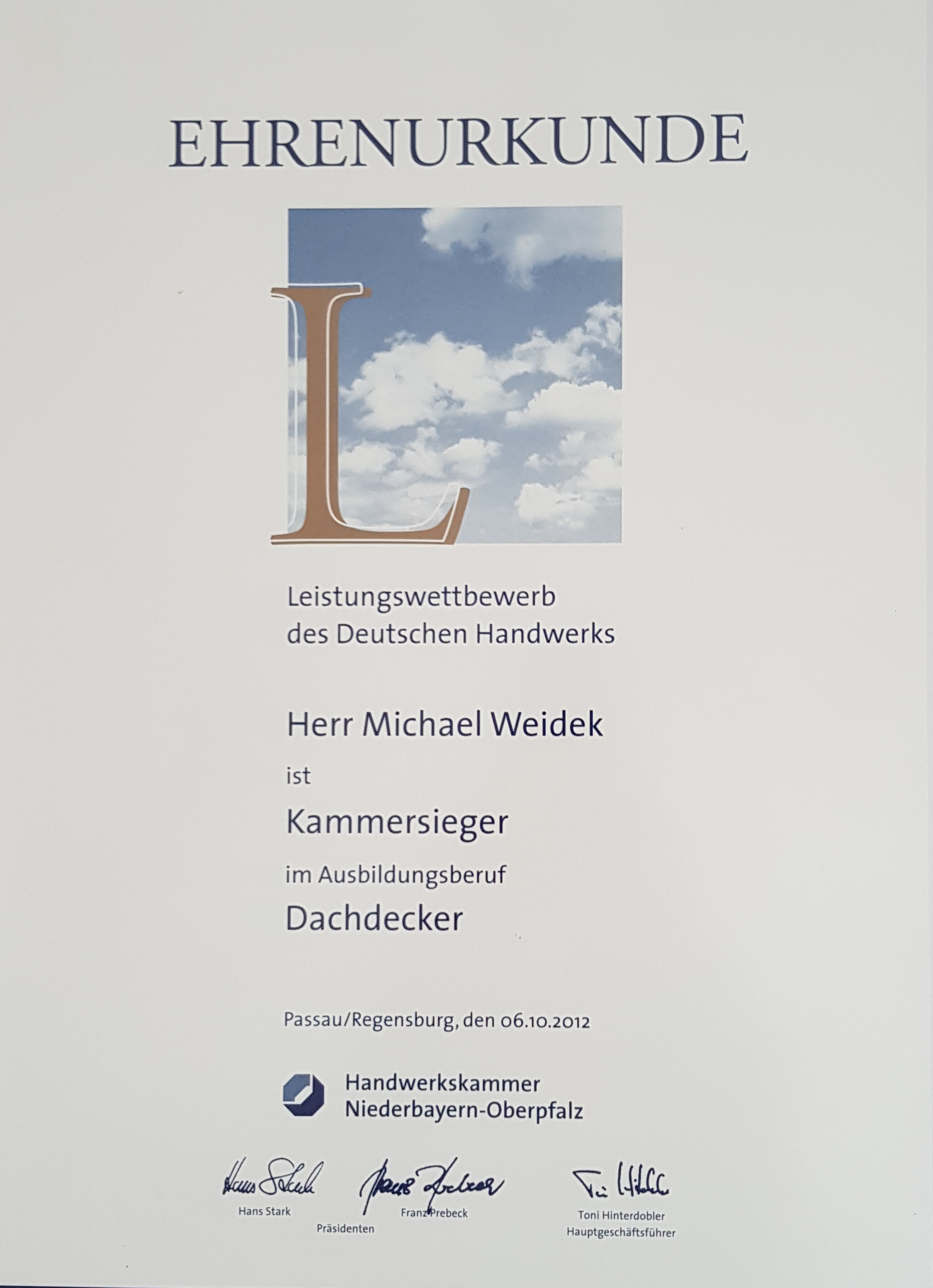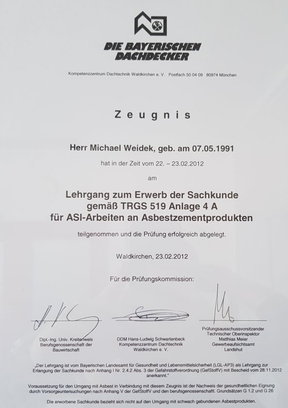 Michael Weidek absolviert die Prüfung zum Dachdeckermeister2014
