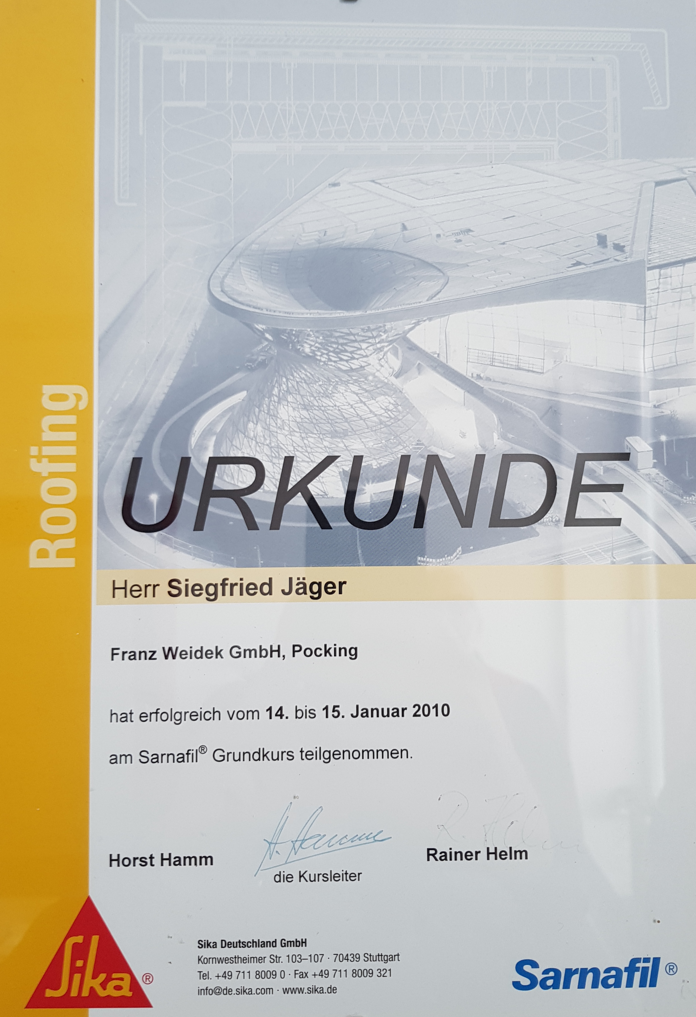 Franz Weidek jun. absolviert die Prüfung zum Dachdeckermeister1982